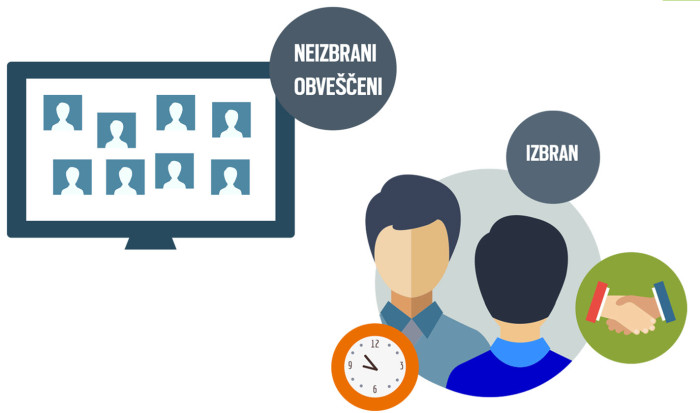 Mladim, pripadnikom generacije Z, je obveščenost o neizbranosti, pa čeprav se prijavljajo na začasno in občasno študentsko delo, izjemno pomembna. Na e-Študentskem Servisu smo zato v spletni poslovalnici za delodajalce razvili inovacijo za obveščanje izbranih/neizbranih kandidatov le z enim klikom. Do inovacije imajo dostop vsi delodajalci, ki na e-Študentskem Servisu oddajo oglas za delo.
